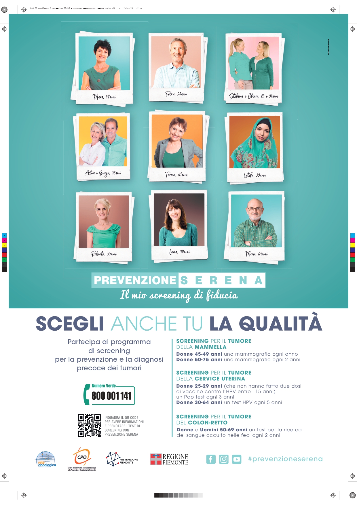 La Regione Piemonte avvia la nuova campagna informativa Screening Oncologici.