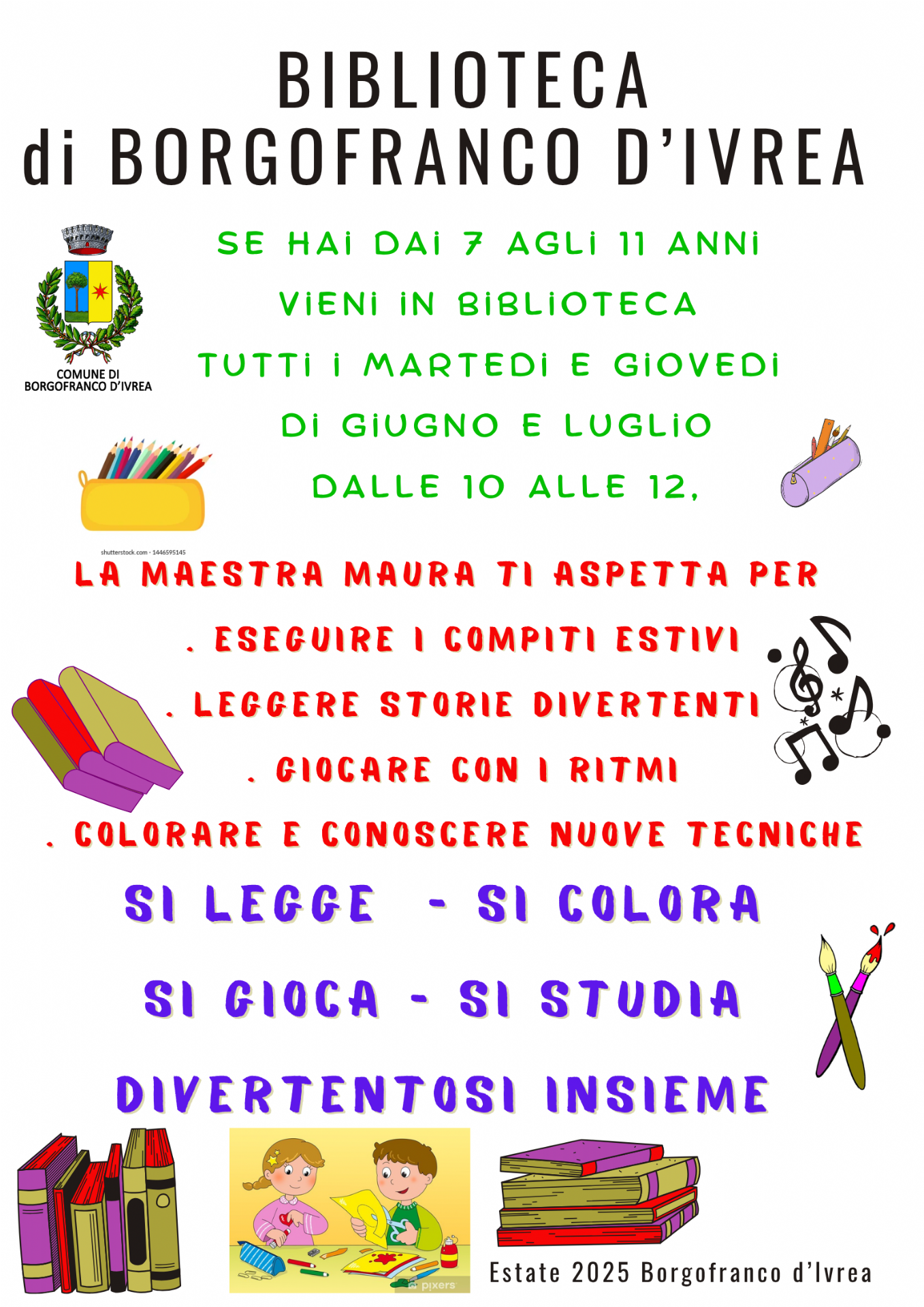 Biblioteca di Borgofranco d'Ivrea - se hai dai 7 agli 8 anni vieni in biblioteca tutti i Martedi e Giovedi di Giugno e Luglio dalle 10 alle 12, qui potrai: