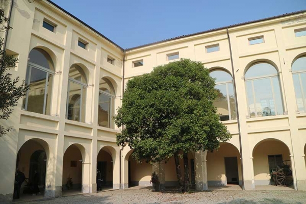 Il Loggiato, infine, si prolunga nella parete di fondo con la prospettiva di una galleria a sette campate.